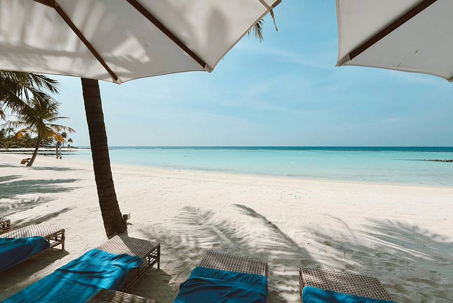 S'échapper loin du monde sur une île-hôtel et profiter du luxe discret de votre villa sur pilotis, surplombant le bleu infini