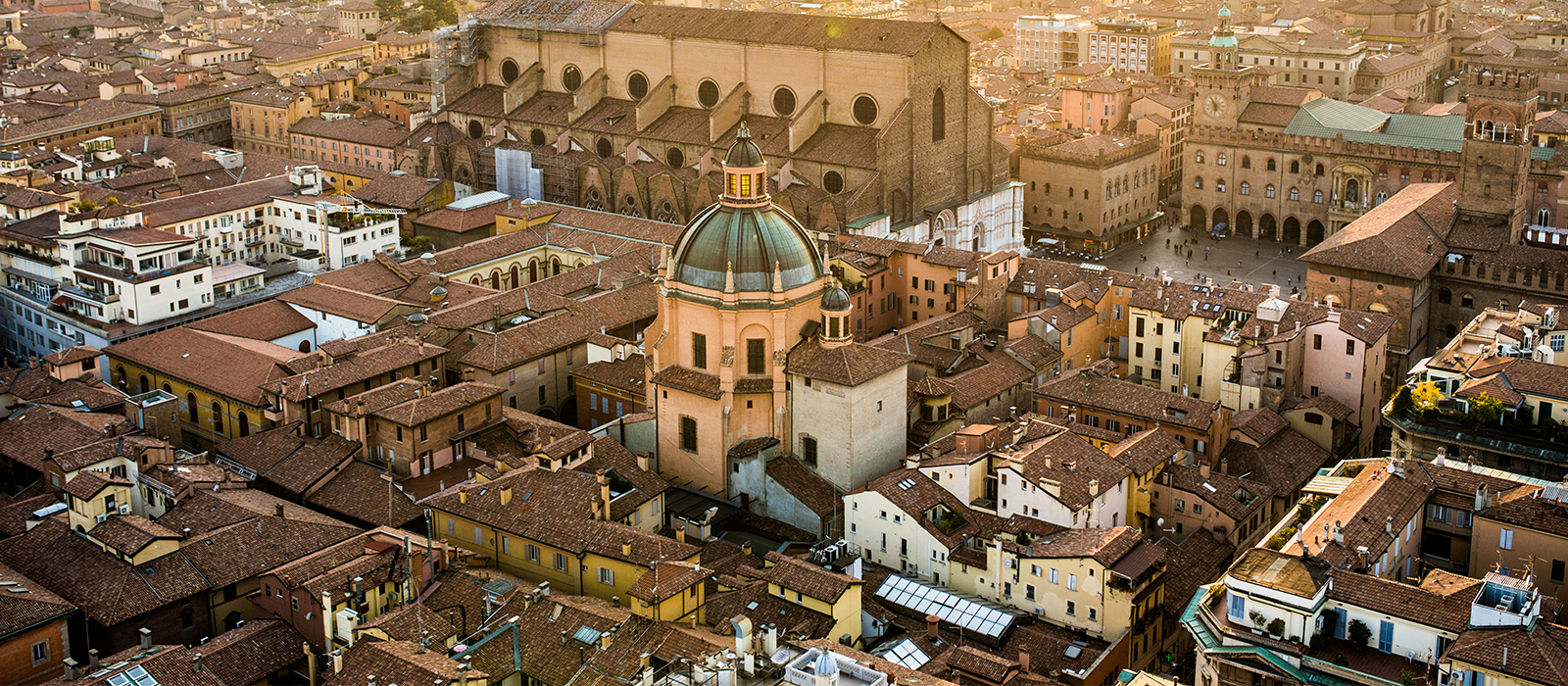 De palais médiéval en basilique gothique, le coeur de la ville se déploie autour d’un vaste ensemble ouvert, qui abonde de bâtiments et monuments splendides, de la piazza Maggiore à la piazza del Nettuno – qui doit son nom à la fontaine monumentale représentant Neptune. La cathédrale San Pietro est majestueuse, et dans les ruelles autour de la piazza Santo Stefano bordée d’arcades, une ambiance de village. On se perd de cloître en cloître dans les Sette Chiese, « sept églises », extraordinaire complexe composé d’un ensemble d’édifices qui datent du Vème au XIIIème siècle – églises, chapelles et cours.