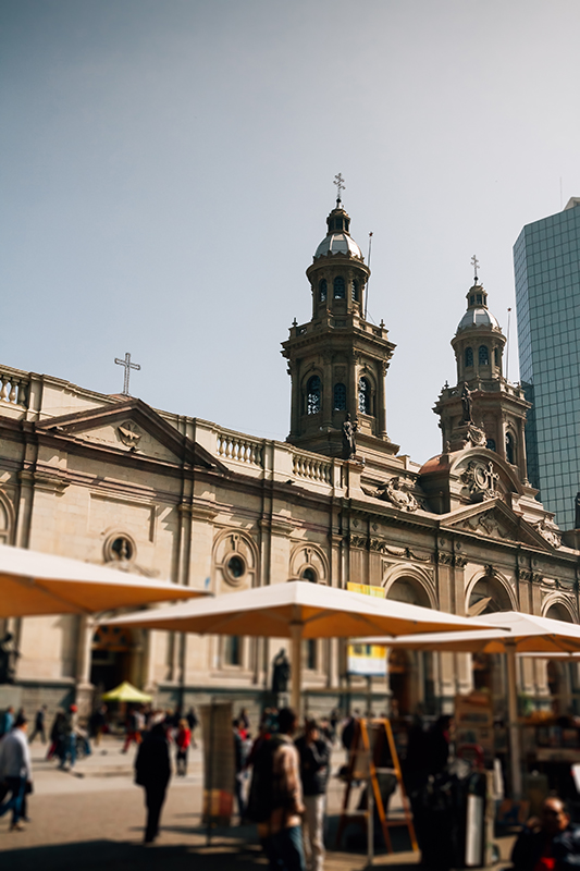 On commence notre balade par la plaza de Armas, le cœur historique de Santiago. On flâne à l’endroit où Pedro de Valdivia fonda la ville au XVIe siècle. La statue équestre du conquistador trône au centre de la place, à proximité de la cathédrale de la ville. Quelque peu interlope une fois le soir venu, le centre historique grouille d’animation en journée. On esquive les vendeurs ambulants et les artistes de rue et l’on entre dans les galeries marchandes surannées où rien ne semble avoir bougé depuis les années 80. On remonte par la charmante rue Merced qui s’aventure jusqu’au quartier avant-gardiste et gay friendly de Bellas Artes. On s’arrête pour un café en terrasse à Emporio La Rosa avant de passer une tête dans le musée des Beaux-Arts. Ce joli bâtiment inspiré du Petit Palais parisien abrite une très belle collection d’œuvres réalisées par l’artiste chilien surréaliste Roberto Matta.
