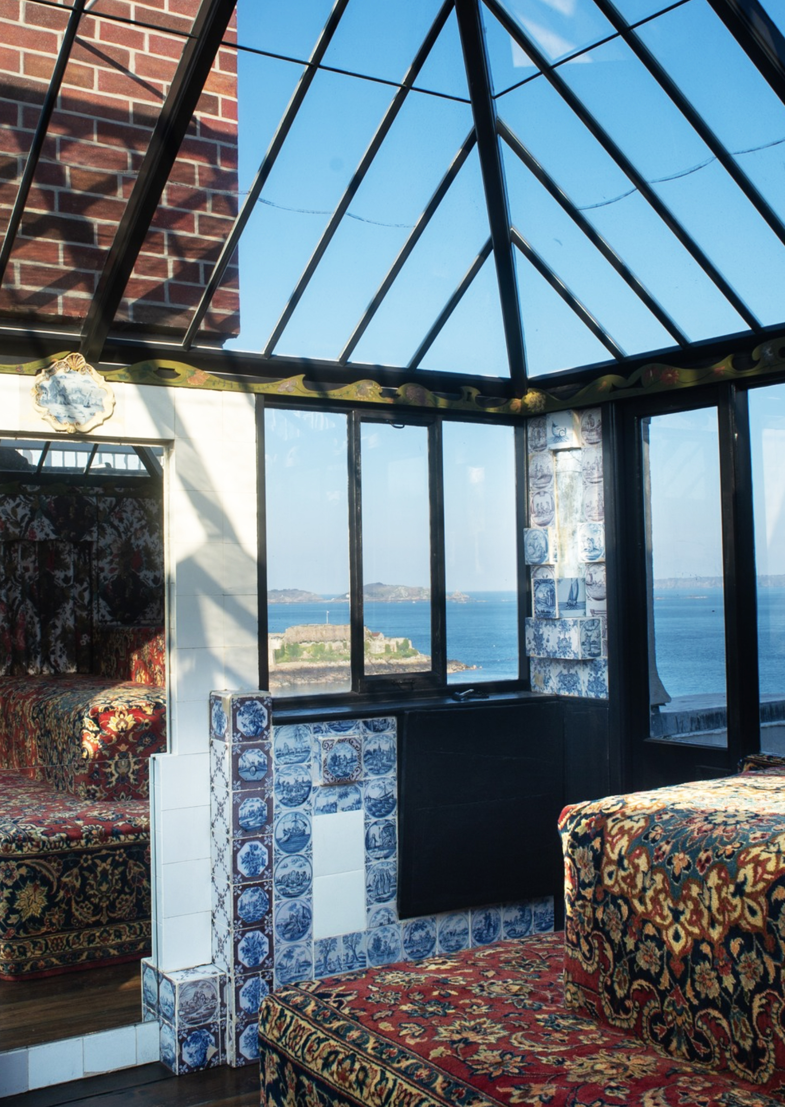 Guernesey, « morceau de France tombé dans la mer et ramassé par l’Angleterre », comme il l’écrivait, fut la terre d’exil de Victor Hugo, fuyant le Second Empire et Louis-Napoléon Bonaparte. À Saint-Pierre-Port, la maison où il vécut plus de quinze ans domine la baie comme un balcon sur la mer. La demeure surprend dès l’entrée : une succession de pièces étroites, de boiseries sculptées, d’objets maritimes, de miroirs qui multiplient la lumière. Mobilier hétéroclite, panneaux chinois, brocarts et tentures scandinaves frisent le délire gothique. Le salon rouge impressionne, l’atmosphère est irréelle. On connaissait Victor Hugo le romancier, le poète, l’homme politique ; on découvre ici un décorateur fantasque. Derrière la bibliothèque, un escalier sombre mène sous les toits à une chambre de verre, le « look-out » avec vue panoramique sur la mer et les îles voisines. C’est là que commence le royaume d’Hugo, celui où il vivait comme dans un phare – par beau temps, on aperçoit la France. Le romancier écrivait face à la fenêtre, debout devant ses tablettes fixées au mur, dans un tête-à-tête quotidien avec les flots et l’exil. C’est ici qu’il achève Les Misérables et écrit Les Travailleurs de la mer, dédié à son île-refuge. Une visite émouvante, dans un lieu qui porte encore le souffle du grand écrivain.