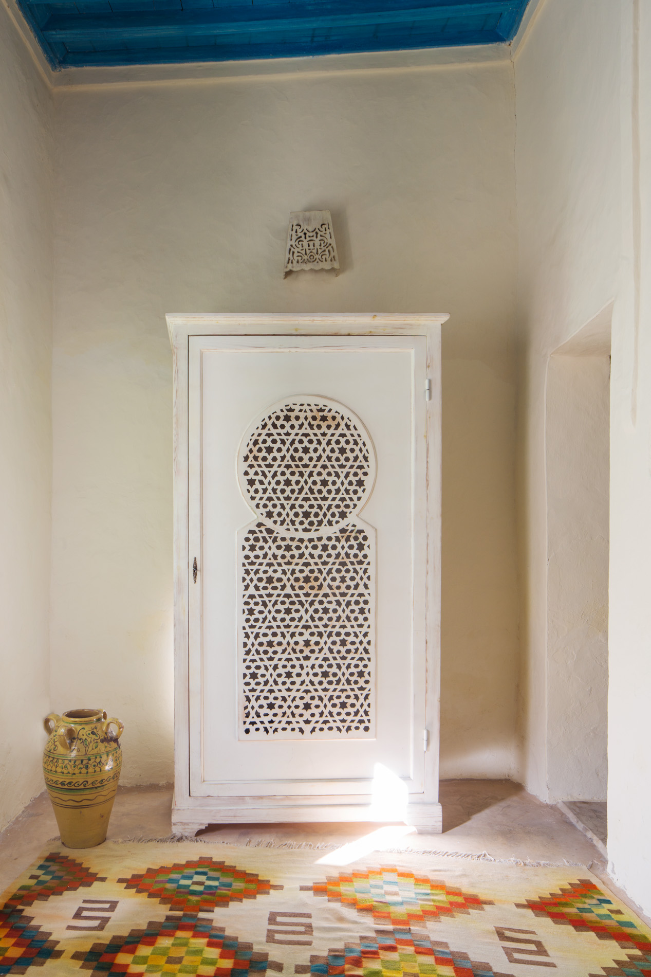 La “capitale”, Houmt Souk, reste le gros bourg tranquille que Flaubert a connu, dédale de rues pavées, habitations chaulées, terrasses de cafés ombragées de figuiers et criée aux poissons. À Guellala, du toit-terrasse du musée du Patrimoine, juché sur le point culminant de l’île plate et caillouteuse (52 mètres au-dessus de la mer), les maisons cubiques coiffées de coupoles blanches ondulent vers l’infini. Mais c’est à Erriadh, plus ancien des villages juifs de l’île, que l’on s’installe, dans une maison d’hôtes au cœur du village, pour une halte hors du temps. Au détour d’une ruelle, une façade où s’appuient deux cactus : cinq houchs (habitations traditionnelles) réunies pour former un labyrinthe de patios et de chambres.