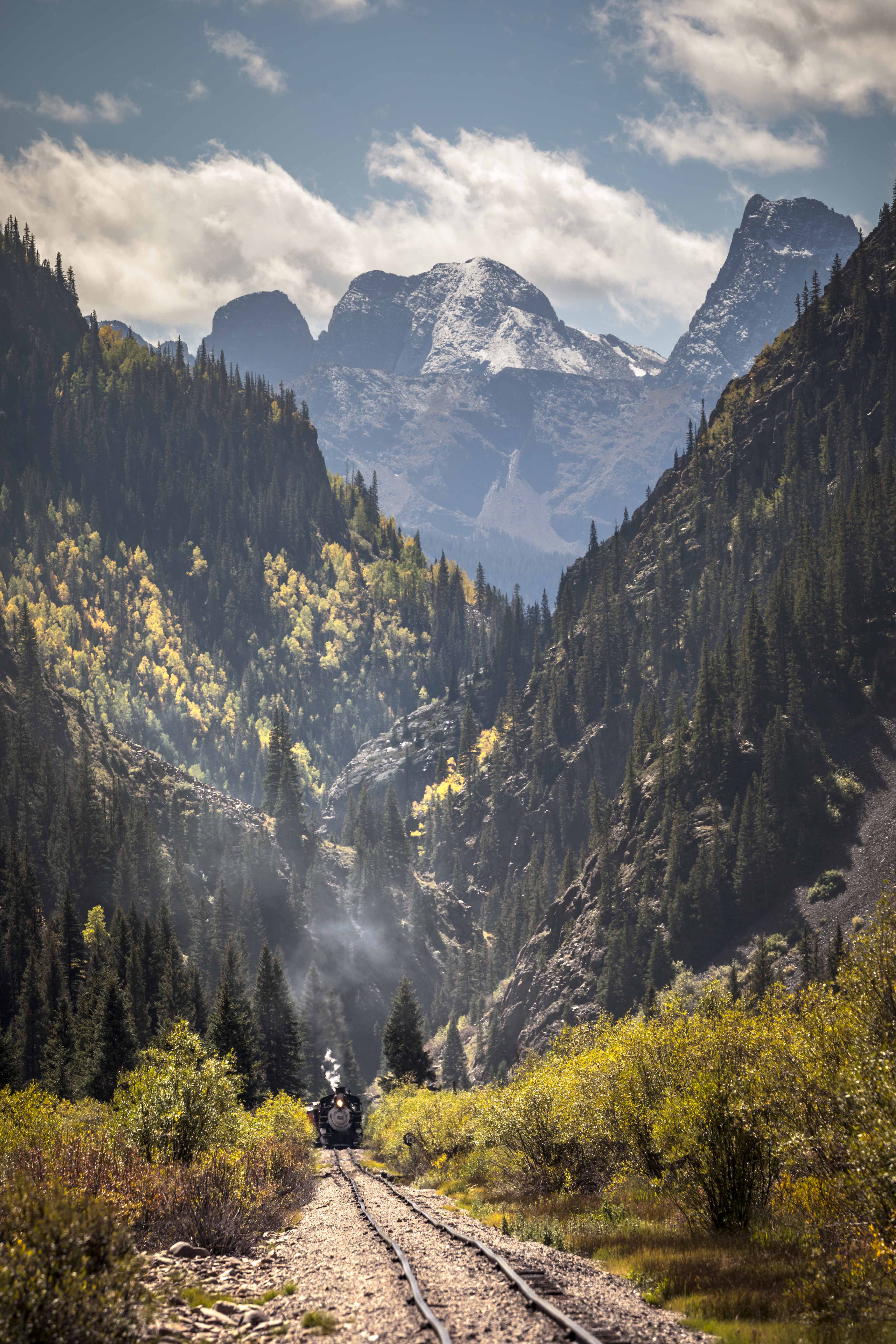 La ligne touristique du Durango & Silverton Narrow Gauge Railroad transporte les voyageurs au temps des pionniers et de la ruée vers l’or. Le train, un authentique train à vapeur mis en service en 1882 pour acheminer l’or extrait des mines de Silverton (Colorado), est classé monument historique. On part de Durango, communauté western à l’atmosphère délicieusement Old West, nichée à 2000 mètres d’altitude au pied des San Juan Mountains, pour faire halte dans l’ancienne ville minière de Silverton, avant de remonter à bord pour retourner à Durango. La locomotive d’époque se faufile entre d’épaisses forêts de pins, des eaux aigue-marine et des pics déchiquetés, dans des paysages demeurés extraordinairement sauvages. Un voyage dans le temps.