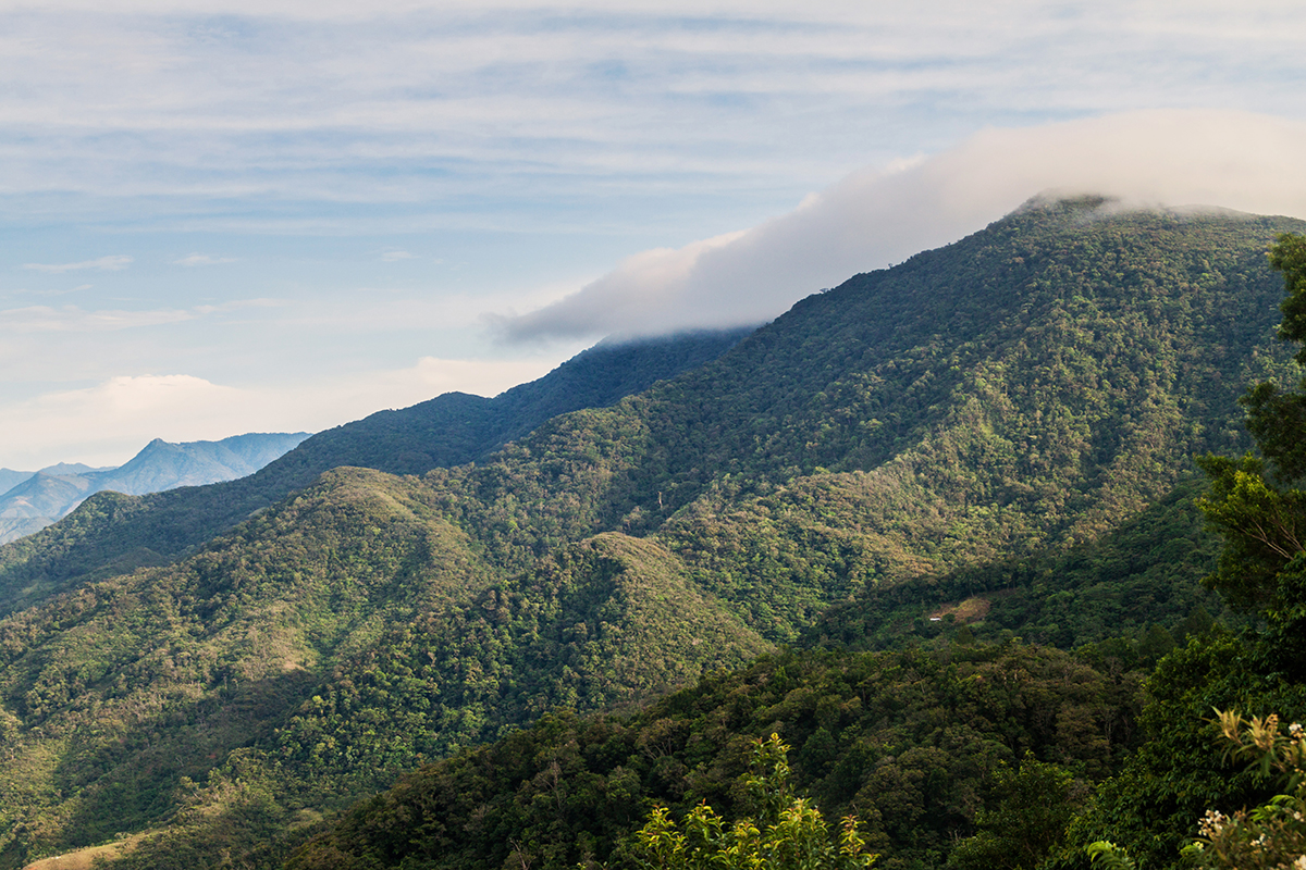 Aux confins de la province de Chiriquí, le Volcán Barú, seul volcan actif du Panama, dresse sa silhouette souveraine à 3 474 mètres d’altitude. C’est le toit du Panama, mais aussi son cœur tellurique, battement profond d’une terre à la fois vive et paisible. Bien qu’endormi depuis plus d’un siècle, ce colosse veille, impassible, sur deux océans qu’il relie d’un seul regard. L’ascension débute souvent dans l’obscurité, lampe frontale allumée, cœur battant, guidé par les étoiles. Le sentier serpente à travers une forêt de pins tropicaux et de brume, où les arbres se parent de mousses épaisses, et où le silence semble amplifié par les nuages. Là-haut, quand le ciel s’éclaire entre deux continents, on peut apercevoir simultanément les eaux du Pacifique et celles des Caraïbes – prodige géographique à la beauté renversante.