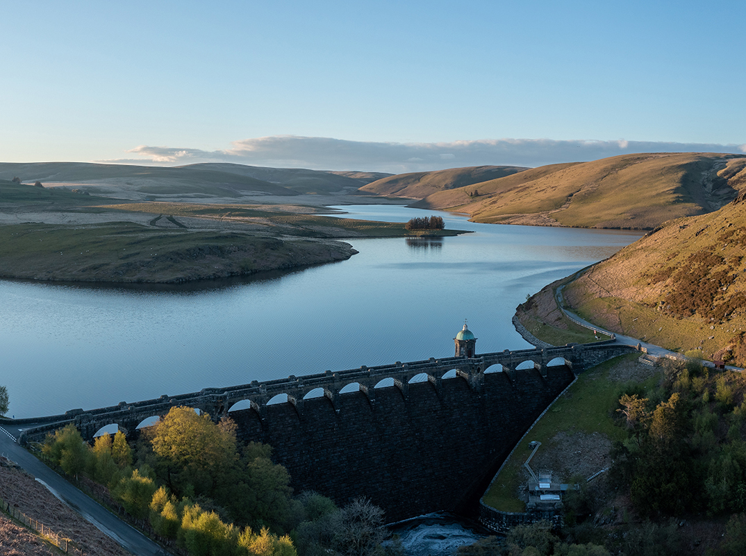 Dans les Mid Wales, à Elan Valley, la révolution industrielle a laissé un paysage grandiose. À la fin du XIXe siècle, de majestueux barrages et réservoirs ont été construits sur les rivières Elan et Claerwen pour approvisionner Birmingham en eau potable. Aujourd’hui, ces imposants ouvrages semblent surgir naturellement du paysage et magnifient la beauté des landes et des grands lacs qui les entourent. Le regard se perd entre les eaux calmes des réservoirs, miroirs du ciel changeant, et les collines de bruyères et de tourbières. Les digues de pierre confèrent au lieu une dimension presque poétique : l’architecture industrielle y devient paysage.