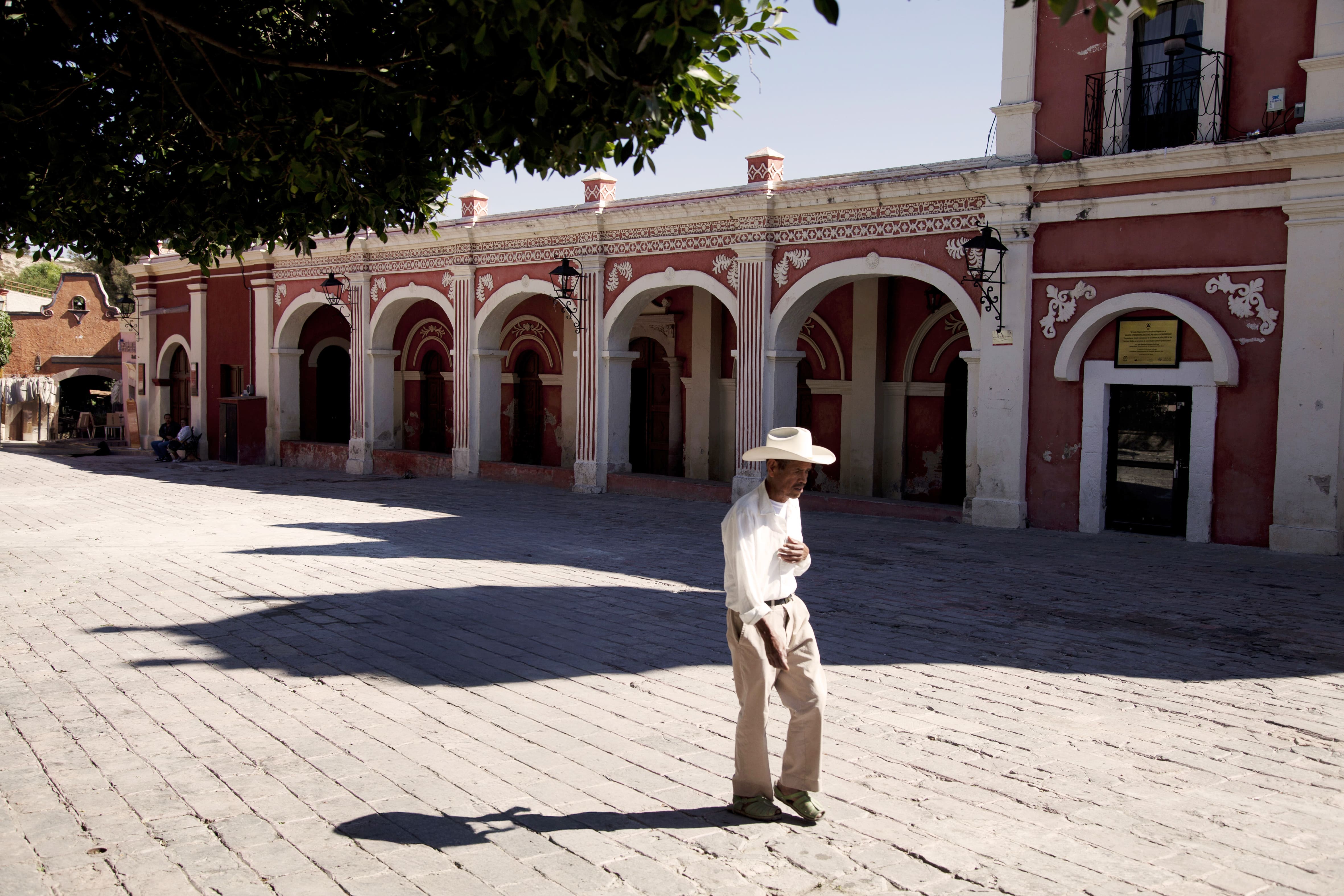 La journée suivante commence à la Presa, hors des remuements de la ville basse. C’est là qu’habite notre poisson-pilote du jour. On commence par une belle demeure Art nouveau. Vitraux de qualité et très caractéristiques de ce style souple. Ceux qui habitaient là à l’époque se sont sans doute félicités de la construction du Teatro Juarez. Pendant ce temps, l’avenir esthétique du Mexique s’esquissait : Diego Rivera pintor magnifico est né à Guanajuato, en 1886. Ensuite, les aménagements hydrauliques du quartier, dont l’origine remonte au XVIIIe siècle. Où que l’on aille, il n’y a pas d’empire sans maîtrise de l’eau. Ici, il y avait un empire. En passant devant l’École normale d’instituteurs, on remarque un bronze réaliste qui exprime toute la dignité reconnue à la fonction. Un baume pour les instits. Dans un atelier de céramiste, nous admirons la dextérité des artistes. Ces techniques étant de vieille tradition mexicaine, il est agréable de les voir toujours vivantes et non délocalisées overseas. Dans une arène de baseball, des jeunes s’exercent à devenir Fernando Valenzuela. Il est bien temps alors de faire une halte dans une halle pour une bière et des carnitas : faites cuire du cochon longtemps ; tenez tiède sous de grosses lampes ; à la demande, hachez grossièrement viandes et abats ; servez sur des tortillas. Puis retour à ces jolies rues aux maisons pastel, qui escaladent et dévalent les collines sur lesquelles est installée la ville. Le métal argent était la grande affaire à l’hacienda San Gabriel de Barrera, construite au XVIIe siècle. L’argent et la religion, si l’on en croit la collection d’art réunie par le musée. En tout cas, la visite met clairement en évidence un dispositif colonial déjà industriel, les éléments d’une société. C’est aussi un beau jardin calme, que le tintamarre urbain n’atteint pas. Pour suivre, que diriez-vous d’une praline ? Au Mexique, tout de même. Ce chocolatier travaille les meilleures fèves de cacao. Et compose avec du piment, du nopal ou du fromage bleu. Virtuose en son domaine. Derrière une porte quelconque, dans un jardinet, un temazcal, sauna préhispanique. Rite de sudation encore arrimé aux pratiques chamaniques ; sous la bâche rouge, on est loin de l’hygiénisme moderne. Après de beaux ateliers de gravure, on traverse le marché Hidalgo, inauguré en 1910. Il faillit être une gare. En tout cas, il est siglé Eiffel. Et complète le panorama de Guanajuato Belle Époque. La soirée mezcal chez notre ami local clôt dignement la journée. Cet alcool d’agave mérite que l’on se penche sur la variété et la finesse de ses arômes.