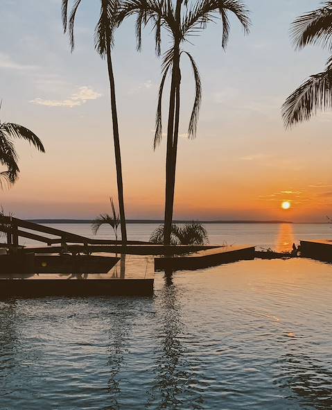 Transfert pour l'aéroport et vol pour Manaus. À l'arrivée, transfert et installation pour la nuit dans un grand hôtel posté aux abords de la plage et des rives du rio Negro. Son architecture moderne tout en hauteur décline vastes baies vitrées et balcons surplombant le fleuve. Les espaces communs tournent autour d'une piscine à débordement, d'un restaurant et de terrasses verdoyantes où prendre le petit déjeuner. Dans la chambre spacieuse, le style contemporain épuré – sols clairs, bois chaleureux, grands lits – se mêle à de jolies vues sur l'Amazonie.