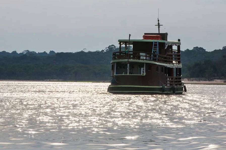 En début de matinée, transfert jusqu'au port et installation pour trois nuits sur le bateau intimiste à bord duquel vous allez sillonner une petite partie d'Amazonie. À bord, vous faites connaissance avec l'équipage et le guide qui va, tout le long du périple, vous éclairer sur cette fascinante région tropicale. Déjà, il vous en présente les espèces, les coutumes, la beauté. Bientôt, on largue les amarres pour voguer vers le lac Janauari autour duquel gravite un écosystème riche en arbres géants, reptiles, oiseaux et plantes exotiques. Une fois au lac, on troque le bateau pour un canoë motorisé afin d'observer d'un peu plus près la faune amazonienne et notamment dauphins de Tucuxi, dauphins roses et toutes sortes d'êtres ailés. Déjeuner à bord tandis que l'on navigue cette fois vers le rio Solimões. L'après-midi est dédié à la quête du pirarucu géant, l'un des plus grands poissons d'Amazonie – certains mesurent près de trois mètres ! – et à l'observation d'un phénomène étonnant, la fameuse "rencontre des eaux". En ces lieux, en effet, les eaux noires du rio Negro et les eaux ocre du fleuve Solimões se côtoient sur plusieurs kilomètres sans toutefois se mélanger. Une fois réunis, les deux cours d'eau n'en forment plus qu'un seul, appelé... l'Amazone. Nuit à bord.