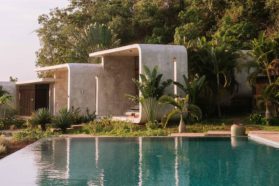 Transfert privé pour la gare où vous embarquez à bord d'un train en partance pour Kampot. À l'arrivée, transfert privé en tuk-tuk et installation pour deux nuits au sein d'une plantation d'épices – dont les fameux poivres de Kampot –, dans l'une des quatre chambres luxueuses ayant le privilège de cet emplacement. On loge au cœur d'un jardin tropical où s'est plantée une élégante maison moderniste de béton et de verre. Chacune des chambres, prolongées d'une terrasse, s'ouvre sur la plantation, son lac et la montagne du Bokor. La décoration est épurée, minimaliste, laissant le foisonnement et l'opulence à la végétation qui, de l'autre côté de la baie vitrée, semble pousser à vue d'œil. Sur place, les hôtes se partagent, dans un esprit "maison d'hôtes" très haut de gamme, salle à manger, salon, cuisine et une superbe piscine à débordement – spot de choix au moment du coucher du soleil. Ils ont aussi accès à l'exploitation agricole et au "Spice Bar", espace moderniste perché au-dessus des champs d'épices, où sont servis glaces (au poivre, entre autres), jus frais, bières, cocktails signatures et tapas bien relevées.