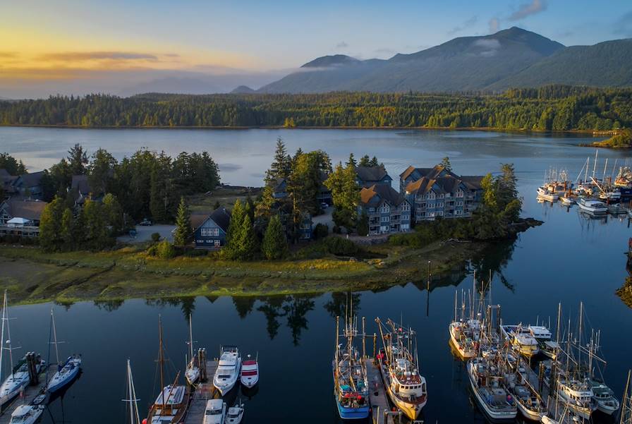 Traversée de l'île de Vancouver d'est en ouest pour gagner Ucluelet. Vous posez vos valises pour trois nuits légèrement en marge du village au sein de chalets éparpillés au bord de l'eau. Les constructions de bois bleu se déclinent sur deux étages ; elles hébergent des suites bien équipées toutes prolongées par un balcon. De ce perchoir privilégié, il n'est pas rare de voir passer au large loutres et lions de mer qu'il est d'usage de saluer, en bons voisins.