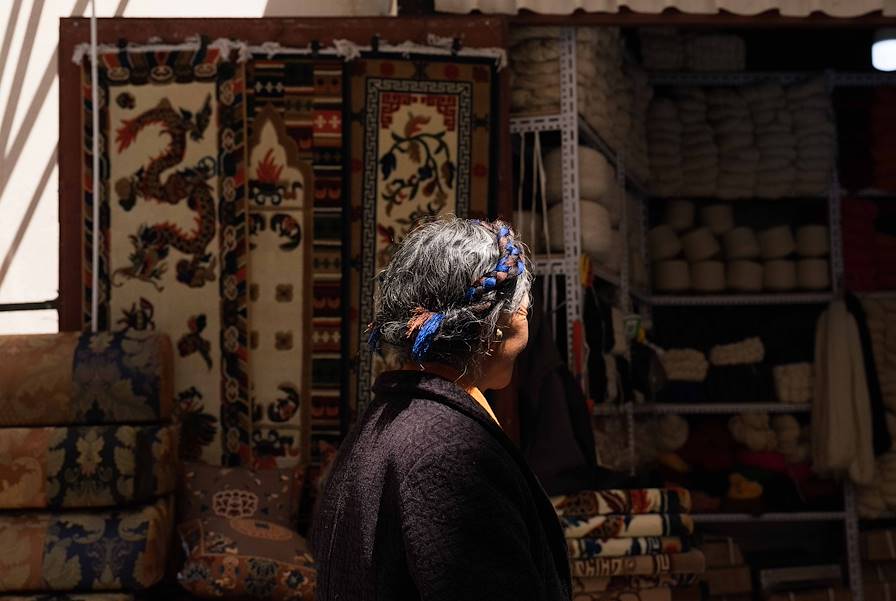 Au programme - Le monastère de Cijuelin et la vie quotidienne à Lhassa. Afin de commencer la journée dans de bonnes dispositions, cérémonie de sangsol au monastère. Il s’agit d’une offrande d’encens, à la fois purificatrice et propitiatoire. Très ancienne pratique destinée à placer sous les meilleurs auspices un laps de temps nouveau. Après cela, promenade dans les rues populeuses du centre de Lhassa jusqu’au Barkhor, autour du Jokhang. On visite le Tromzikhang, où se vendent beurre de yak, fromage, nouilles ou sucreries. Dans les marchés, on se coudoie naturellement et ce sont d’excellents endroits pour prendre le pouls d’une ville. L’intrication du sacré et du profane surprend les voyageurs arrivant de contrées où ces domaines sont soigneusement distingués. On médite là-dessus dans une maison de thé traditionnelle, devant une infusion beurrée et salée. Puis, on prend la direction du musée du tsatsa. Il s’agit de tablettes d’argile moulées à motif religieux. Des éléments – pierres ou métaux précieux, voire cendres-reliques – peuvent être incorporés à la terre, qui rendent l’objet inestimable. Les tsatsa sont autant des œuvres d’art que des objets de dévotion. La visite comprend une initiation technique.
