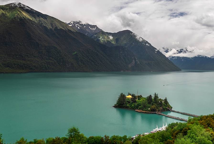 Au programme - Balade spirituelle et rencontre avec une famille tibétaine. Après une brève navigation sur le lac, la promenade s’engage dans les bois riverains. L’atmosphère est paisible ; le vent provoque par à-coups le profond bruissement de la forêt. Dans les échancrures de celle-ci, l’eau émeraude apparaît, ou le bleu du ciel, une cime blanche. On sent se communiquer à soi la force de la nature. Et le pas se fait ferme et élastique. Ici, un oratoire, où les gens du coin déposent des offrandes, qui entretiennent les bonnes relations entre leur environnement et eux. Les voix orantes se mêlent à celles de la forêt. Et puis, apaisé, on regagne le bord de l’eau. Une famille tibétaine vous attend. L’hospitalité dans ces hautes régions reculées n’est pas un vain mot. Le voyageur se respecte pour le chemin qu’il fait et pour ce qu’il représente d’autre. Le thé au beurre, s’il est rituel, ne vous est pas servi machinalement. Le guide peut être le truchement d’un échange vrai et privilégié. Il faut en saisir l’occasion et entrer ainsi de plain-pied dans la vie du pays Kongpo.