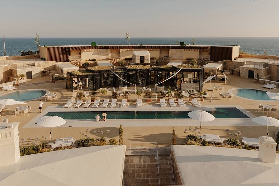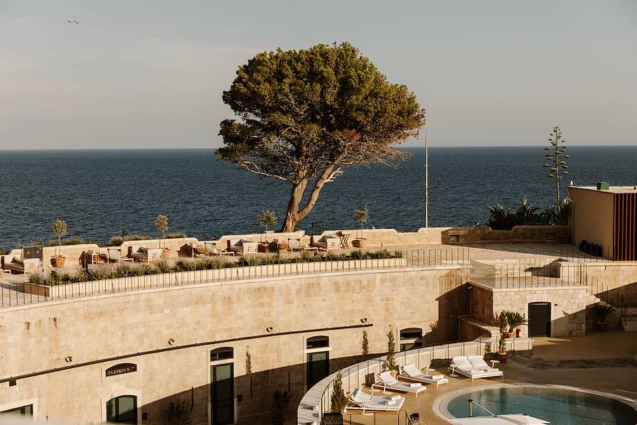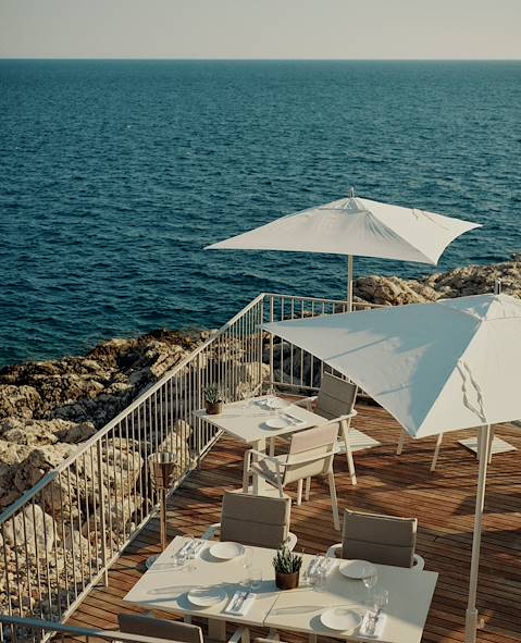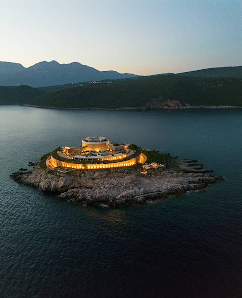 Transfert en véhicule privé de Dubrovnik aux bouches de Kotor (Monténégro), pour passer la frontière avec plus de sérénité. Parvenu à l'entrée de la baie, transfert obligé en bateau, votre nouvelle adresse étant située sur une île. Installation pour deux nuits dans cette forteresse du XIXe siècle classée au patrimoine mondial de l'Unesco. Disons-le clairement, la rénovation de ce bâtiment historique est absolument merveilleuse. La trentaine de chambres et suites, comme l'ensemble, arborent une décoration contemporaine élégante, où la pierre naturelle côtoie laiton vieilli, chêne massif et matériaux durables. Les teintes claires et naturelles semblent s'allier à la douceur des courbes du bâtiment circulaire. Dans certaines, on s'endort en admirant les fresques d'origine peintes au plafond. L'ancien chemin de ronde accueille désormais une terrasse perchée ouverte sur l'Adriatique. L'espace piscine et ses transats occupent eux l'enceinte intérieure. Sur place, les hôtes sont choyés par le spa, un bar de mixologie inspiré de l'univers des speakeasy et trois restaurants dont un gastronomique. Ce dernier associe dans un cadre design produits locaux et de saison à une splendide carte des vins. Au nord de l'île a été aménagée une plage d'où l'on jouit de vues privilégiées sur la baie. Enfin, le lieu joue aussi les mécènes, accueillant dans son atelier des artistes en résidence. On retrouve d'ailleurs des œuvres d'artistes locaux un peu partout dans l'hôtel. On touche à la perfection.