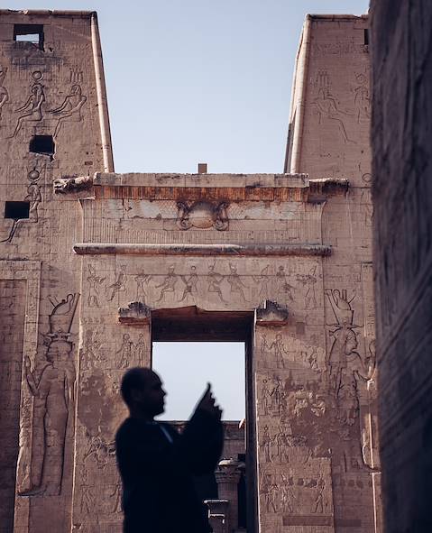 Le matin, visite du temple d’Edfou, construit à partir du IIIe siècle avant J.-C. et dédié à Horus, le dieu à tête de faucon, à son épouse Hathor, déesse de la beauté et de l’amour, et à Harsomtous, leur fils. Ce temple est l’un des mieux conservés d’Egypte. Puis, déjeuner à bord et navigation pour Kôm Ombo. En soirée, vous visitez le temple de Kôm Ombo dont la singularité est autant architecturale que religieuse. Unique en Egypte, il est consacré à deux divinités, à travers deux temples réunis dans un même lieu ; la partie sud était dédiée au dieu faucon Horus l’Ancien (Haroéris) et la partie nord au dieu crocodile Sobek. Dîner à bord.