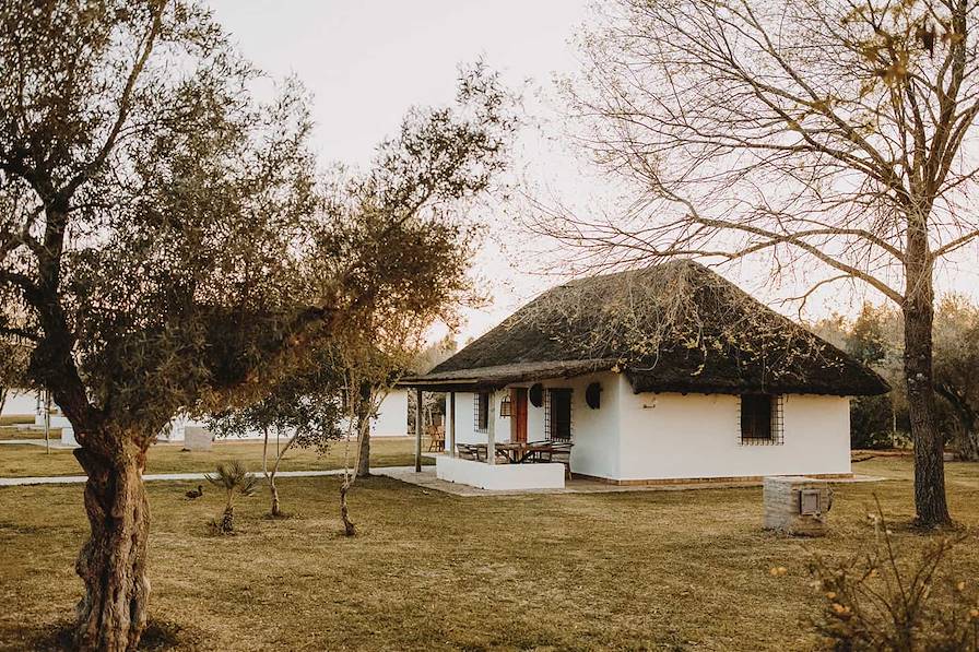 Dans l'après-midi, prise en charge du véhicule de location et route en direction de la réserve naturelle de Doñana, plus grand parc national d'Espagne, réputé notamment pour sa concentration d'oiseaux étonnante. Installation pour deux nuits aux portes du parc, dans une choza marismeña. À l'origine, ces habitations traditionnelles abritaient paysans, bergers et pêcheurs des marais ; construites en terre ou en briques blanchies à la chaux, elles sont chapeautées d'un haut toit de jonc tressé. Si la vôtre dispose aujourd'hui de tout le confort moderne, l'environnement et l'expérience, eux, sont restés intacts. Le site est propice à la détente et aux belles balades en pleine nature ! On apprécie la piscine d’eau salée, où il fait bon barboter en fin de journée, ainsi que le large choix d’activités pour petits et grands proposées au départ de la propriété.