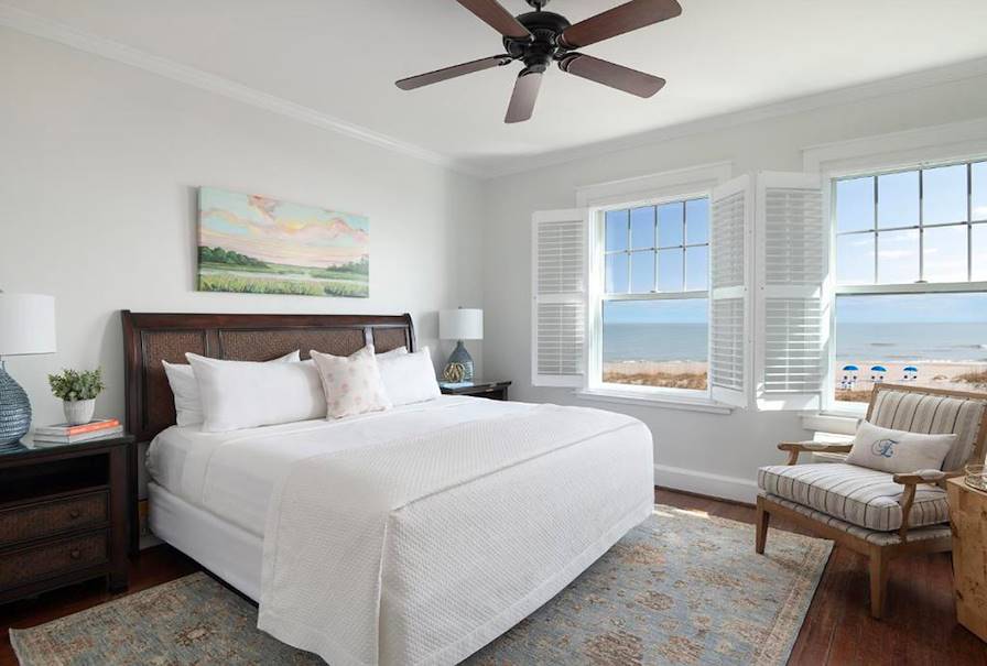 Route pour Amelia Island, au nord-est de Jacksonville. Installation pour deux nuits dans une vaste bâtisse victorienne posée en retrait de la plage, sur laquelle sont disposés transats et parasols réservés aux hôtes. Dans les chambres, les espaces sont aérés. Tout comme les vues sur la mer. Pour le reste, on bouquine au salon, on lézarde sur le sable, on sirote un apéritif sous le vaste porche au coucher du soleil...