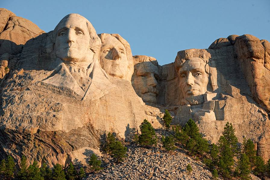 On laisse ensuite le Wyoming dans le rétroviseur pour gagner le Dakota du Sud. Route pour Keystone en passant par les villes de Newcastle, Upton et Moorcroft. Là, nous vous recommandons un détour par la Devil’s Tower, curieux monolithe de basalte cannelé qui culmine à 263 mètres de hauteur, lieu sacré des Amérindiens immortalisé dans le film Rencontre du troisième type de Steven Spielberg. Plus loin, on croise le parc national des Black Hills, montagnes, grandes plaines d’herbes grasses, chaos de roches noires, chevaux sauvages et bisons : le décor est planté. C’est au cœur de ces paysages que zigzague l'Iron Mountain Road, empruntant de vertigineuses passerelles et des tunnels étroits. C'est là aussi que se trouve la Jewel Cave, seconde plus grande grotte des États-Unis surnommée "la grotte des joyaux" en raison de la présence de cristaux de calcium – où une halte est vivement recommandée. En fin de trajet se dessine le fameux Mount Rushmore, sculpture monumentale signée Gutzon Borglum, représentant les quatre présidents qui menèrent le pays de la colonisation au XXe siècle : George Washington, Thomas Jefferson, Abraham Lincoln et Theodore Roosevelt. Les soirs d'été a lieu un joli spectacle de sons et lumière.
