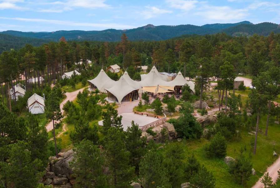 À Keystone, installation pour deux nuits au sein d'un camp bien décidé à redéfinir les codes du camping – ou plutôt du "glamping". En effet, les tentes sont de véritables nids douillets n'ayant rien à envier à des chambres d'hôtel. La décoration est élégante, la chambre prolongée d'une agréable terrasse. Et pour ne rien gâcher, on bénéficie de superbes vues sur la nature environnante. Le soir, on se retrouve autour du feu pour se régaler de s'mores, marshmallows grillés et chocolat pris en sandwich entre deux biscuits.