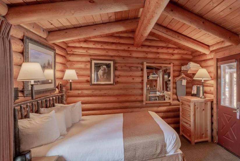 Route pour Jackson et installation pour deux nuits dans une adresse résolument "Far West" composée de chalets en rondins disséminés à travers la propriété. À l'intérieur, du bois, du bois, encore du bois. Et puis tout ce qu'il faut pour être à l'aise, une kitchenette par exemple, pour préparer son petit déjeuner préféré. Pour le lunch et le dinner, le barbecue en extérieur est à la disposition des hôtes, tout comme les tables de pique-nique. On pourra aussi rejoindre le centre-ville de Jackson, à quelques "blocks" de là. Joli bonus, l'hôtel possède une piscine dont on profite allègrement après avoir sillonné le parc voisin.