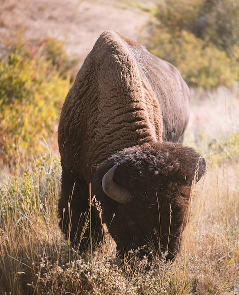 À ne pas manquer, en chemin - Bison Range, vaste réserve naturelle dédiée à la protection du bison d'Amérique, espèce emblématique des Grandes Plaines. Aujourd'hui gérée par les tribus amérindiennes Salish et Kootenai, elle donne un superbe aperçu des paysages du Montana – collines, prairies dorées et, en toile de fond, les Mission Mountains. On peut y observer de nombreux bisons en liberté, mais aussi des wapitis, antilopes pronghorns, cerfs et une grande variété d’oiseaux. Une route panoramique d’une trentaine de kilomètres invite à parcourir la réserve en voiture, ponctuée de points de vue spectaculaires et de courts sentiers de marche. Le Visitor Center, situé à l’entrée du site, présente l’histoire de la réserve et la culture amérindienne locale.