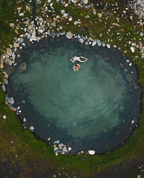 Au programme - Les sources chaudes d'Uunartoq. Accompagnés d'un guide, direction la petite île d'Uunartoq, à 1h30 de bateau du littoral. Cette dernière a le privilège de posséder les seuls bains d'eau naturellement chaude du Groenland où l'on peut se baigner. Sur place, une cabane, un bassin naturel d’une dizaine de mètres de diamètre où l’eau atteint une température moyenne de 35 °C et la nature, grandiose, tout autour. La vue sur le fjord et les icebergs dérivant au loin est tout simplement magique. Depuis le ponton, on rejoint la source via un petit sentier.