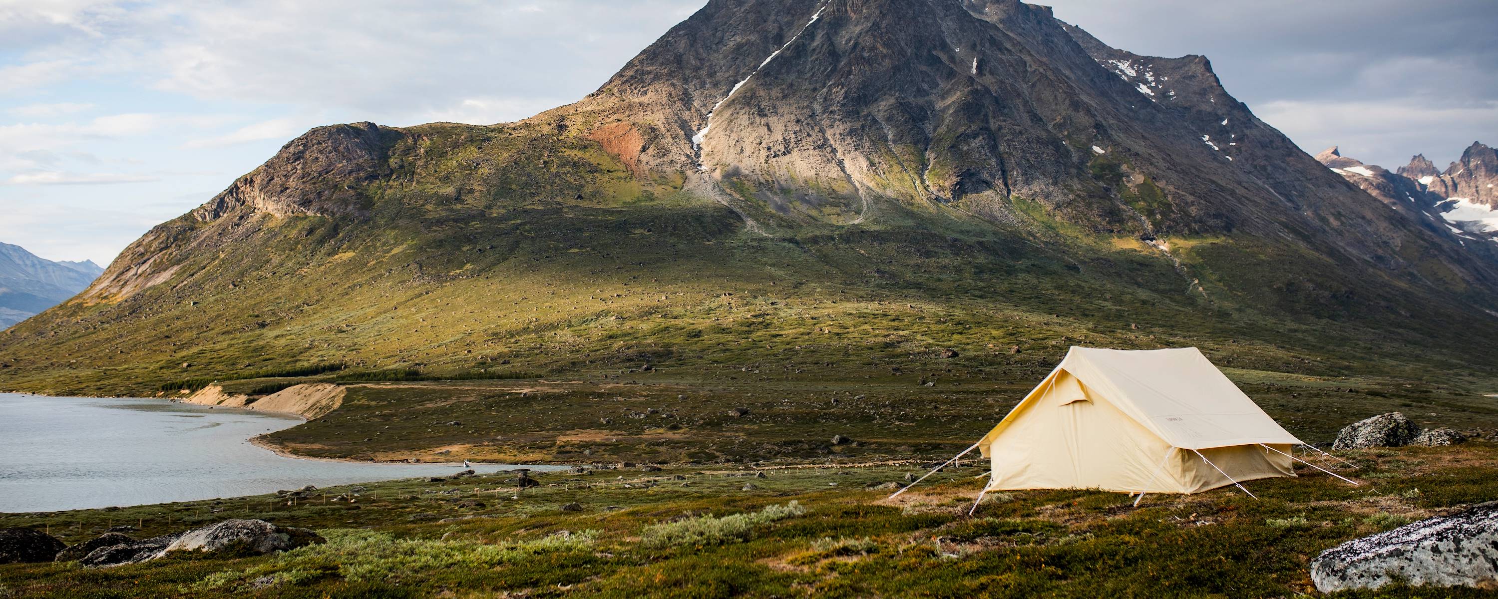 Pour rejoindre l'hôtel, on emprunte une courte portion de la King's Road (4 km), agréable promenade bien balisée traversant prairies et petits cours d'eau et ponctuée de vestiges contant la vie agricole de la région (vos bagages sont amenés à bon port par l'hôtel). Ici et là, le regard se pose sur les fjords et même sur le village d'Igaliku, blotti au fond de la vallée. Installation pour deux nuits au sein d'un petit chalet de bois rouge aux fenêtres blanches prolongé d'un joli porche. À l'intérieur, des lits, une table et une salle de bains modernes. Il dépend d'un hôtel à taille humaine dont le restaurant met en lumière les produits groenlandais. Parce que l'on se trouve légèrement en hauteur, on jouit de très jolies vues sur le fjord. La nature se trouve juste au pas de la porte.