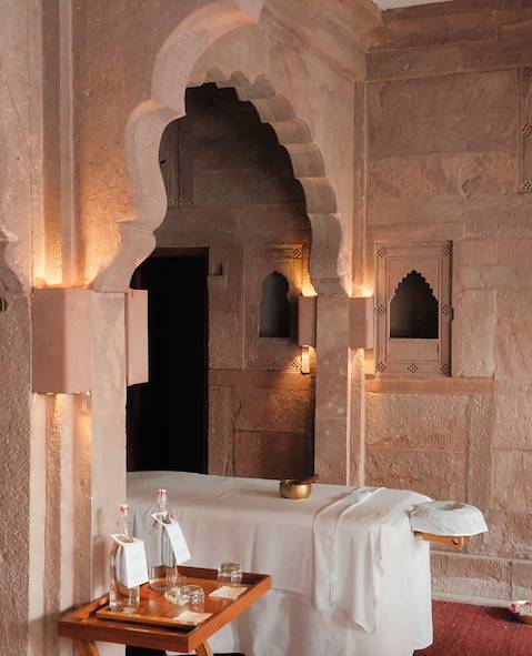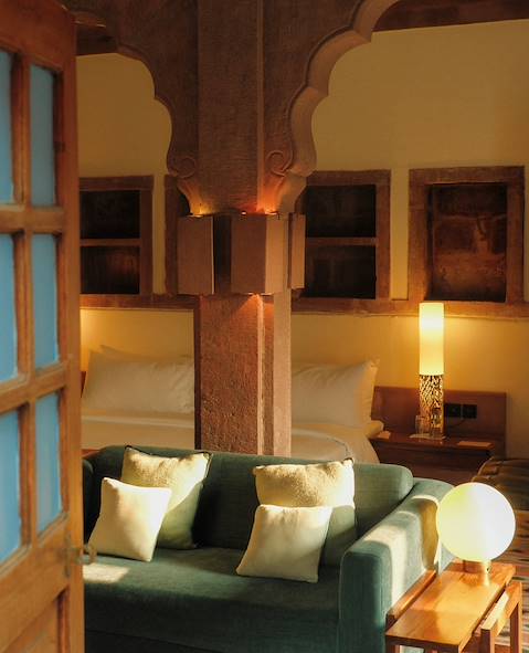 Route pour l'ancienne cité de Jodhpur, aux portes du désert du Thar. Cette cité de maharajas orgueilleux apparaît déclinée en bleu – ce bleu qui autrefois signait l’appartenance à la caste des brahmanes, et colore encore aujourd'hui les façades des demeures. Posée sur les hauteurs de la ville, Mehrangarh, forteresse de grès "construite par des anges et des titans", selon l’expression de Kipling, se dresse fièrement. C'est à ses pieds, au cœur de la cité murée, que vous posez vos valises pour la nuit. Service, identité et originalité semblent les maîtres mots de l'hôtel. Dans la chambre, un design séduisant – mention spéciale pour la ravissante salle d'eau. Ouvragés comme de la dentelle, les murs et fenêtres rendent hommage à l'art du jali. Autour, vétivers, basilic et citronniers. Depuis la piscine, vue privilégiée sur le fort-vedette de la cité.