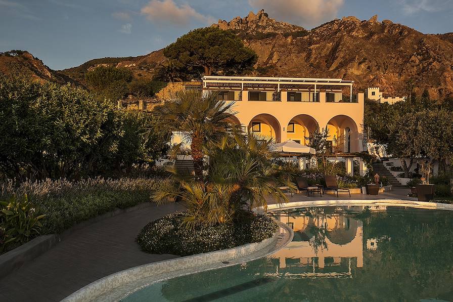 Installation pour deux nuits sur l'île de Stromboli même, à cinquante mètres du port. Qui n'a jamais rêvé de dormir au pied de l'un des volcans les plus actifs d'Europe ? Non content de bénéficier d'une vue imprenable sur le puissant sommet, l'édifice qui vous accueille, à l'architecture éolienne, tutoie la plage de sable noir de Scari, au creux d'un ancien bourg de pêcheurs. L'ensemble est entouré d'une centaine d'arbustes méditerranéens, imprégnant l'air de parfums de genêts et d'ajoncs. Par-delà le cadre, on apprécie les chambres agrémentées d'un mobilier artisanal en bois aux couleurs pastel. Surtout, c'est un point de départ idéal pour s'élancer sur les pentes du Stromboli ou savourer un déjeuner sur la terrasse de l'un des restaurants du village. Avec, toujours, une vue au choix sur la mer ou le volcan – on sait pour laquelle les ados opteront !