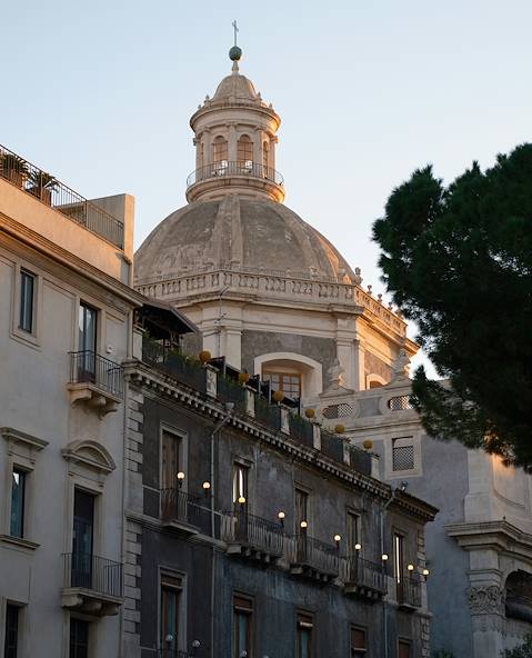L'heure est venue de quitter la famille des Éoliennes pour rejoindre une île d'une autre envergure (la plus grande de Méditerranée) : la Sicile. Pour ce faire, hydroglisseur de Stromboli à Milazzo (2h30 environ). Au débarquement, un chauffeur privé attend pour vous escorter, à 145 kilomètres au sud, dans la ville de Catane. Dans l’ombre de l’Etna, toujours actif, la ville ne manque pas d’attrait. En partie détruite, elle aussi, lors du tremblement de terre de 1693, elle fut presque intégralement reconstruite dans le plus pur style baroque. Sa principale singularité réside dans l’utilisation de la pierre de lave du volcan, montagne bienfaitrice cette fois, dotant plusieurs monuments de la ville d’une apparence sombre caractéristique. Démonstration du côté de la porta Garibaldi ou de la célèbre fontaine de l’éléphant. Symbole de la ville depuis l’antiquité, l’éléphant, encore présent sur ses armoiries, protégerait, selon la légende, Catane et ses habitants des humeurs du volcan, auquel on finit toujours par revenir.
