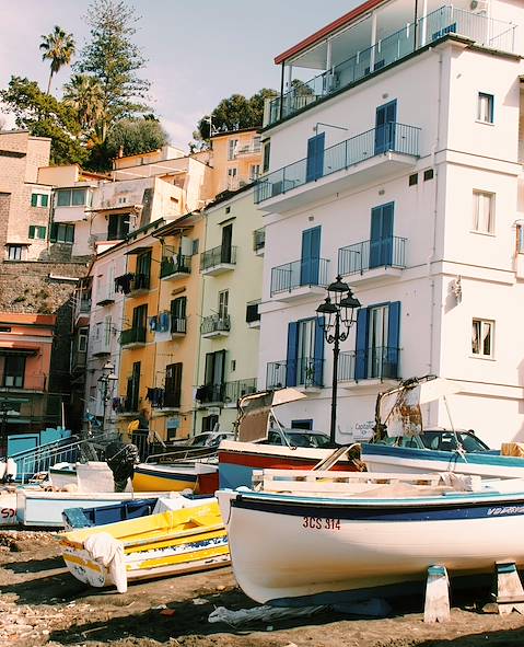 À Sorrente, on voit le petit et le grand port, la place Tasso, du nom du poète de "La Gerusalemme liberata", enfant de la ville. On pousse la porte de la cathédrale dei Santi Filippo e Giacomo, XIe-XXe siècles. Les promenades sur les falaises sollicitent la vue, bien sûr, mais aussi l’ouïe et, de façon insistante, l’odorat. Ainsi aux jardins Cataldo (aussi appelés "l'Agruminato"), où les agrumes sont cultivés de manière traditionnelle sur palissage de châtaigner, paillé au besoin. Ce verger créé au XIXe siècle, où poussent, entre autres, des citronniers, est un enchantement. On peut y observer le travail méticuleux qui conduit de l’arbre au bicchierino en terre cuite dans lequel on boit le limoncello.