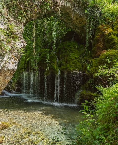 À voir, à faire en chemin - L' Oasi Grotte del Bussento. Cette réserve naturelle, protégée par le Fonds mondial pour la nature (WWF), s'étend sur 600 hectares. Un phénomène karstique spectaculaire s'y produit : le fleuve Bussento disparaît sous terre sur plusieurs kilomètres avant de resurgir impétueusement dans une grotte active, avec des eaux cristallines à 12°C. Sur le sentier ombragé de 3 km aller-retour, on traverse des canyons verdoyants, des ponts en bois, une station riche en fougères, lichens et mousses, et l'on observe un ancien moulin en pierre du XVIIIe siècle alimenté par une cascade.