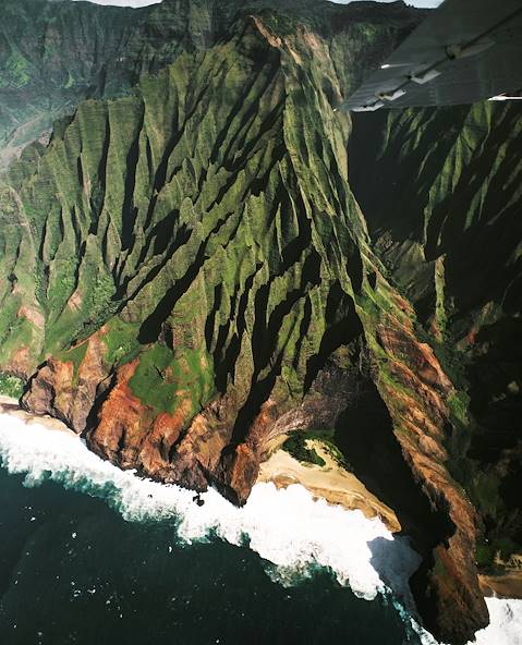 Au programme - Le long du littoral en zodiac. La côte Na Pali occupe une grande partie du nord de Kauai. Accessible uniquement par voie maritime ou pédestre, elle a réussi à maintenir sa beauté naturelle presque intacte : des chutes d’eau, des grottes et des falaises escarpées vert émeraude façonnées par le vent et la mer. En s'y rendant par bateau, on peut facilement accéder aux grottes, plonger sous les cascades et faire un peu de snorkeling dans les eaux turquoise. Des bancs de dauphins longent généralement la côte sauvage en compagnie de tortues de mer et, en saison, on peut même apercevoir des baleines.