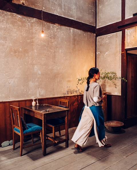 Parvenu à Toyama, installation pour deux nuits dans une ferme centenaire installée en retrait du monde, au milieu des champs de riz. La rénovation méticuleuse du site il y a quelques années s'est faite au moyen de matériaux japonais – argile, bois, soie et washi. Aujourd'hui, il abrite trois chambres vastes et modernes dont les thèmes apparaissent comme autant de déclinaisons d'un retour aux sources, chacune prolongée d'une terrasse. Des œuvres mettant à l'honneur le mouvement d'art populaire "Mingei" parsèment les différentes pièces, des espaces communs jusqu'aux particuliers. Au restaurant, le chef propose son interprétation de la gastronomie italienne à l'aide de produits locaux (pêche sélectionnée sur les quais à quelques kilomètres, gibier chassé dans les montagnes environnantes).