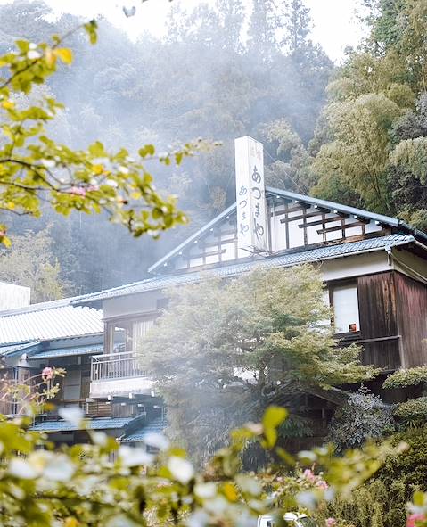Transfert en bus jusqu’à Takayama – une belle occasion de voyager comme des locaux. Parvenus dans les Alpes japonaises, installation pour la nuit à un jet de pierre de la gare et du temple de Kokubunji. En plus d'être un véritable ryokan, votre nouvelle adresse s'est engagée dans un virage moderne assumé et maîtrisé. On n'y trouve pas de télévision évidemment, ni de wifi, mais les fondamentaux du voyageur en terres nippones sont bien là : mobilier traditionnel, service attentionné, bain thermal. Tout cela est encadré par une ossature de bois sur laquelle est jetée une lumière tamisée. C'est immersif, en plus d'être convaincant.