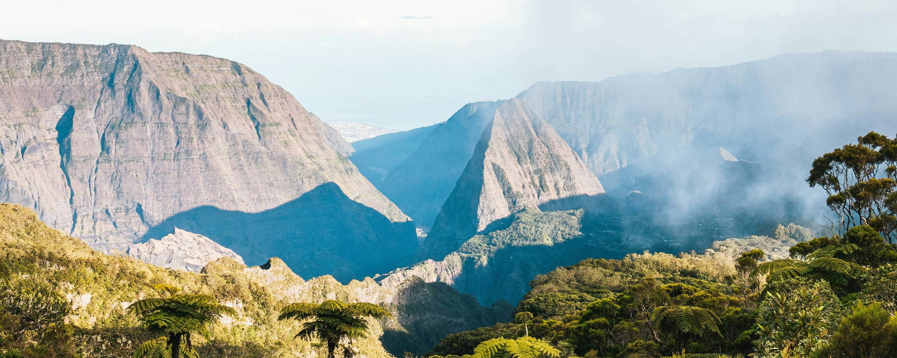 À ne pas manquer - Le cirque de Mafate et ses 140 km de sentiers de randonnée. D’immenses remparts entourant des vallées verdoyantes, des crêtes déchiquetées, une végétation variée et un calme étonnant confèrent à ce cirque isolé une beauté sans égale. On commence la randonnée au départ du Col des Bœufs par une descente de 45 minutes sur un sentier agrémenté de marches qui ne tarde pas à dévoiler de beaux points de vue sur le cirque de Mafate et la plaine des Tamarins. Après avoir atteint cette plaine, le sentier devient quasiment plat et l’on y observe régulièrement le Tamarin des Hauts, avec en arrière-plan la silhouette du Gros Morne. La descente reprend ensuite vers La Nouvelle, point d’arrivée et village le plus vivant du cirque. Ce paisible îlet, parsemé de cases créoles, est idéal pour une pause déjeuner. Pour le retour, on peut reprendre le même itinéraire ou choisir le Chemin Charrette, plus long mais à la pente douce, qui traverse une jolie forêt de cryptomerias et révèle des panoramas différents.