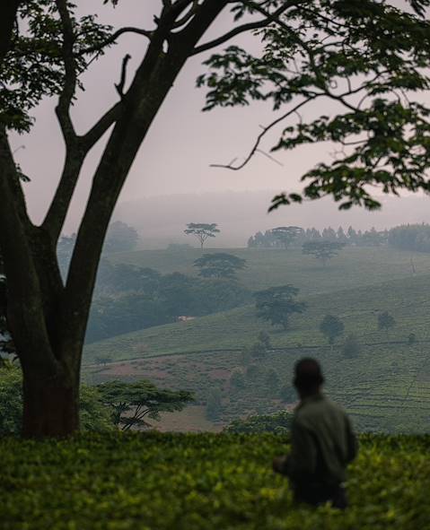 Le décor est vallonné. Les champs de thé s'allongent aussi loin que porte le regard, interrompus çà et là par quelques bosquets d'eucalyptus (ou blue gum comme on dit ici). Des cueilleurs effeuillent en ligne les buissons de thé vert. Cultivé depuis le début du XXe siècle, le thé de Thyolo est le premier à avoir été produit non seulement Malawi mais aussi sur tout le continent. On est ici aux origines du thé africain.