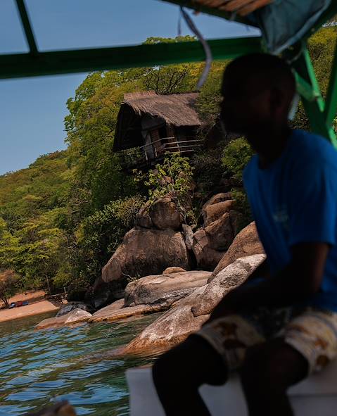Route jusqu’au sud du lac Malawi (2h30 environ) et installation pour deux nuits sur le flanc d'une colline qui dégringole vers l'eau. Tirant profit de cette géographie, les chambres, la piscine et le restaurant ouvrent unanimement sur le lac. La journée débute au sommet, dans le main lodge où se côtoient réception et espaces communs. Un peu plus bas, une première piscine permet de faire quelques brasses panoramiques. En descendant encore un peu, on rencontre les chambres, proprement gigantesques, desservies par des escaliers qui tombent à pic. Et juste en-dessous, enfin, comme une récompense : la plage, dotée elle aussi d'un bassin. Le bar sur place n'a pas été oublié. Et la végétation, opulente, crée un contraste saisissant.