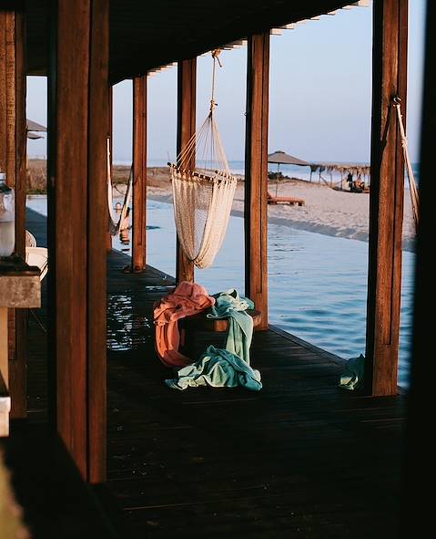 Route pour Santiago. Installation pour deux nuits dans l’oasis. L’eau entretient ici une végétation foisonnante, à hauteur d’homme, comme déployée au sommet de longues tiges. Cette chlorophylle soudaine étonne et ravit. L’hôtel en fait son cadre. Quelques édifices discrets laissant celui-ci à son épanouissement. Votre chambre est claire ; l’élégance et le confort tiennent à la juste perception de ce qu’il faut. Quelques touches de couleur légère, une belle literie et une grande baie sur l’étang. Une baie que l’on pousse pour gagner sa terrasse et s’étourdir un peu du chant des oiseaux. La cuisine du restaurant se veut aromatique et saine. À l’usage, on a le sentiment net et agréable qu’elle y parvient. Tout cela conduit naturellement à une expérience bien-être, à laquelle concourent leçons de yoga, massages et mises en mouvement calibrées. Holistique ? Oui, sans embarras.