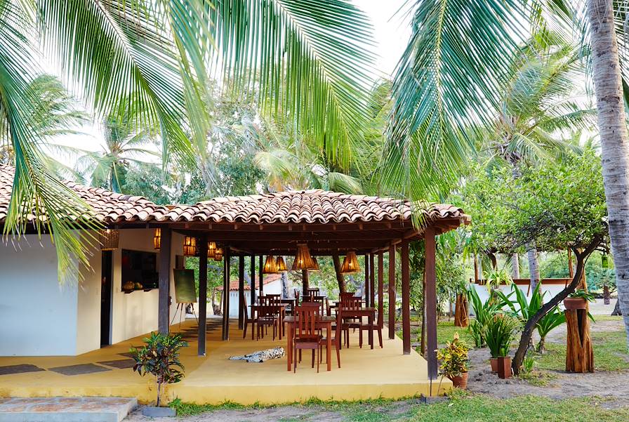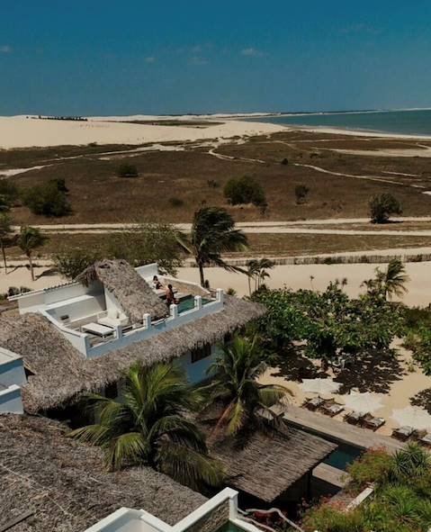 De Camocim à Jericoacoara, le littoral s'éloigne pour mieux revenir. Il faut rejoindre Granja, dans les terres, par l'axe principal de ce coin de pays avant de prendre la tangente puis renouer avec les dunes. L'hôtel, un ensemble de cinq maisons, se trouve dans le village, au bord de l'eau, de l'autre côté du Parque Nacional Jericoacoara, que l'on fend donc en voiture – une arrivée digne de ce nom. Votre chambre est un petit havre de paix au cœur d'une nature grandiose. L'établissement, en retrait du centre-ville, est empli d'une atmosphère spéciale. D'ailleurs, chacun vit à son rythme. Fidèles à la réputation des Brésiliens, les propriétaires apportent bien-être et harmonie à leurs hôtes. Depuis la piscine et le bar, les vues sont splendides, particulièrement à l'heure du pôr do sol (coucher de soleil).