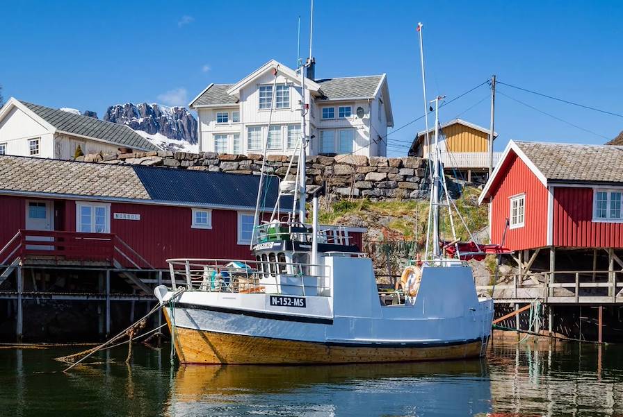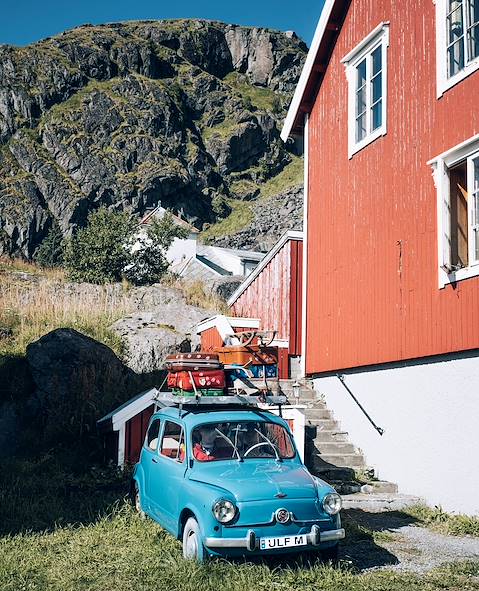 Route jusqu'à l'aéroport, restitution du véhicule de location puis vol direct pour Leknes, le deuxième aéroport de l’archipel des Lofoten. À l'arrivée, prise en charge du second véhicule de location et route pour Sorvagen, sur l'île de Moskenesoya, tout au sud-ouest de l'archipel. En chemin, on croise le village de Nusfjord, parmi les mieux préservés de Norvège et classé au patrimoine de l'humanité.