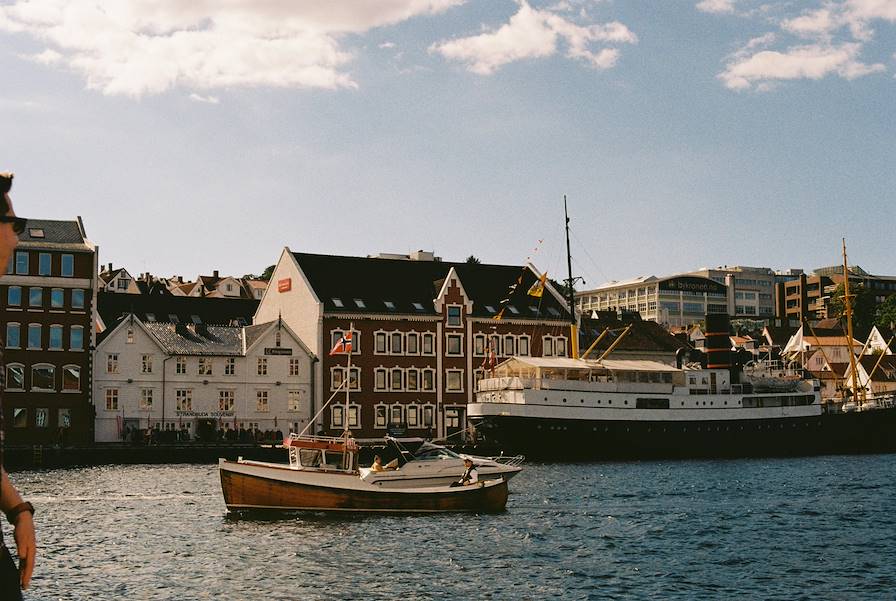 À ne pas manquer - Le quartier de Bryggen, l'image de carte postale de la ville, une rangée de façades colorées le long du port, qui fut l'épicentre de l'industrie de la pêche et du commerce de Bergen du XIVe au XVIIIe siècle et qui figure désormais au patrimoine de l'Unesco. On se promène à travers ce labyrinthe exigu, entre les maisons en bois grinçantes aujourd'hui occupées par des boutiques de souvenirs, jusqu'au parc caché dans l'arrière-cour, le long d'Ovregaten, et l’on poursuit jusqu'au musée Hanséatique pour découvrir ce qu'était la vie des marchands allemands de la Ligue éponyme.