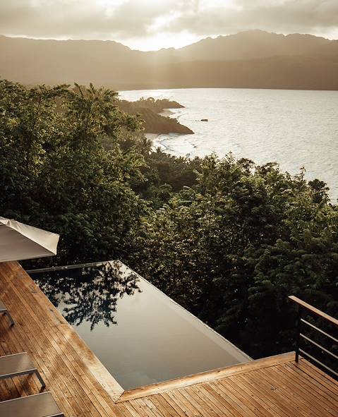 Après un petit déjeuner gourmand, on prend le temps de flâner encore un peu dans les ruelles du quartier historique puis l'on récupère la voiture de location, direction la cordillère Centrale, en plein cœur du pays. À l'arrivée à Jarabacoa, installation pour trois nuits à flanc de montagne, dans une adresse confidentielle pour voyageurs en quête de calme et de fraîcheur. L'architecture se fond harmonieusement dans la végétation et l'esprit est celui d'un écolodge. On trouve ici de nombreux chemins de randonnées et, pour base de repli, une piscine panoramique chauffée ainsi qu'un spa intimiste doté de bains thermaux. Un bar à cocktails et une table contemporaine soignée viennent compléter le tout.