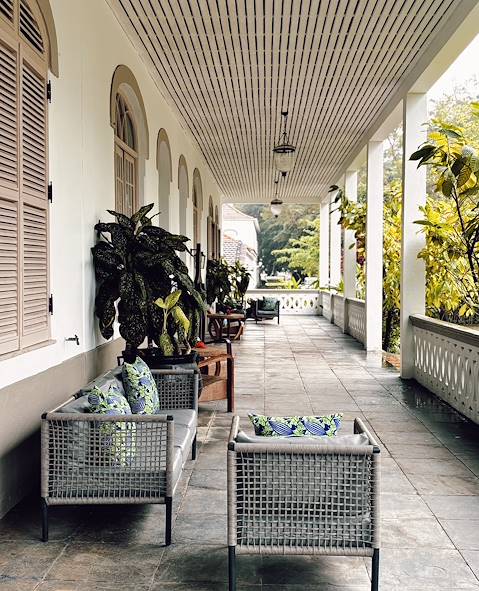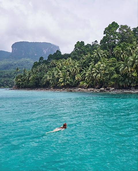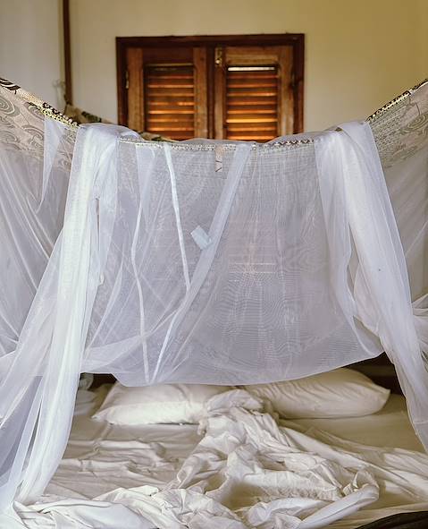 Transfert privé vers l'aéroport et vol vers l'île-sœur de Príncipe. À l'arrivée, nouveau transfert privé et installation pour deux nuits sur la côte nord-ouest, à vingt minutes à pied d'une jolie plage. Votre adresse est une roça, terme employé pour désigner les plantations qui fleurissaient un peu partout sur l'île ainsi que les maisons coloniales qui y trônaient. Celle-ci était ni plus ni moins que la seconde plus vaste plantation de cacao du territoire. Naturellement, les intérieurs ont été considérablement réaménagés et repensés depuis pour accueillir les hôtes. Escalier spectaculaire en bois local, vérandas soutenues par de robustes colonnes et carreaux à motifs : l'ensemble possède un charme indéniable.