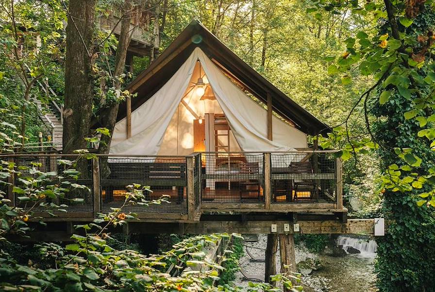 Poursuite de la route jusqu'à Bled et installation pour trois nuits au sein d'un petit ensemble hôtelier situé en bord de lac. Il s'agit d'un établissement attentif à son environnement, produisant ses propres fruits, légumes et plantes aromatiques. Tout cela convient parfaitement aux familles amoureuses de la nature. D'étonnantes cabanes se sont perchées dans les arbres, des tentes occupent le terrain près de l'eau ou dans la forêt. Vous logez de votre côté dans un appartement tout confort au look chaleureux misant sur du bois, des teintes naturelles et une décoration sobre.