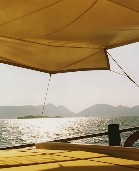 Au programme - Kekova, ville engloutie, en goélette privée. C’est un skipper anglophone qui mène la goélette turque. Cap sur l’île de Kekova dans la baie du même nom. On y approche les vestiges d’une antique cité lycienne, puis byzantine, en partie engloutie, Apollonia. L’effet est tout à fait curieux de ce site urbain qui semble glisser sous la surface de l’eau. Les parages sont aussi les seuls où observer des poissons volants sur cette côte. La navigation se poursuit, tranquille, plaisante. Ici, on pique une tête afin de se rafraîchir. Là, on recommence. Un déjeuner de mezzés et brochettes est pris à bord. Ensuite, ce sont la forteresse byzantine de Kaleköy ; la baie d’Inönü, en forme d’entonnoir ; les tombes lyciennes de Simena ; celles d’Aperlae, qui produisit longtemps de la pourpre impériale à partir du murex tinctorial.