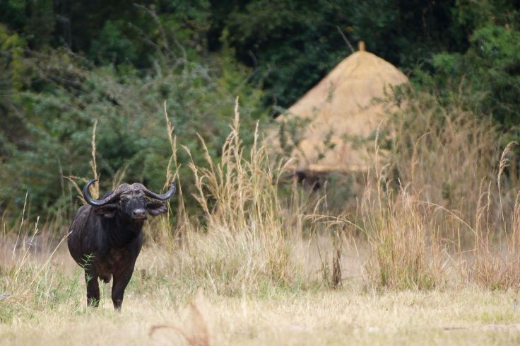 Vol pour le South Luangwa National Park. Installation pour deux nuits dans un petit camp retiré au sud du parc. Quelques rondavelles, avec plateforme particulière et salle d’eau à ciel ouvert, font l’essentiel du domaine. Néanmoins, le confort est mieux que nominal. L’aménagement du logement lui confère un vrai charme bush. Les repas sont pris eux aussi sous un toit de chaume. Le mess et le bar n’ayant pas de cloisons qui les en séparent, on reste, fourchette ou verre à la main, en contact direct avec la nature. Cuisine du jour. Electricité solaire pour la lumière indispensable (si des bougies ne peuvent faire l’affaire) et les batteries, l’eau chaude. Pas de wifi. Vous êtes là pour une expérience qu’on pourrait appeler élémentaire, mais qui est surtout cohérente : la nature est un contexte global, dont on ne s’absente pas en appuyant sur la touche on d’un smartphone ou d’une tablette.